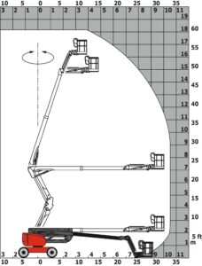 Liften har en maksimal arbejdshøjde på 18 meter og en horisontal rækkevidde på 10,62 meter. Platformen har en løftekapacitet på op til 230 kg, hvilket gør den velegnet til både personel og nødvendigt værktøj.